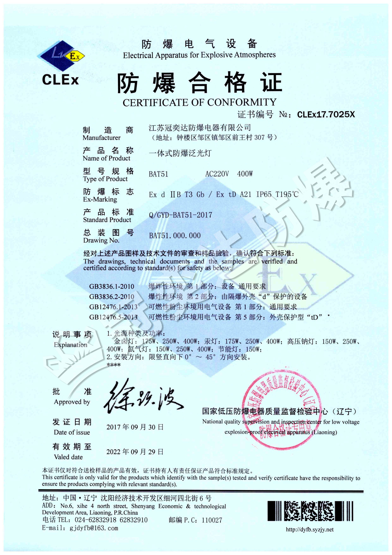 BAT51防爆泛光燈合格證