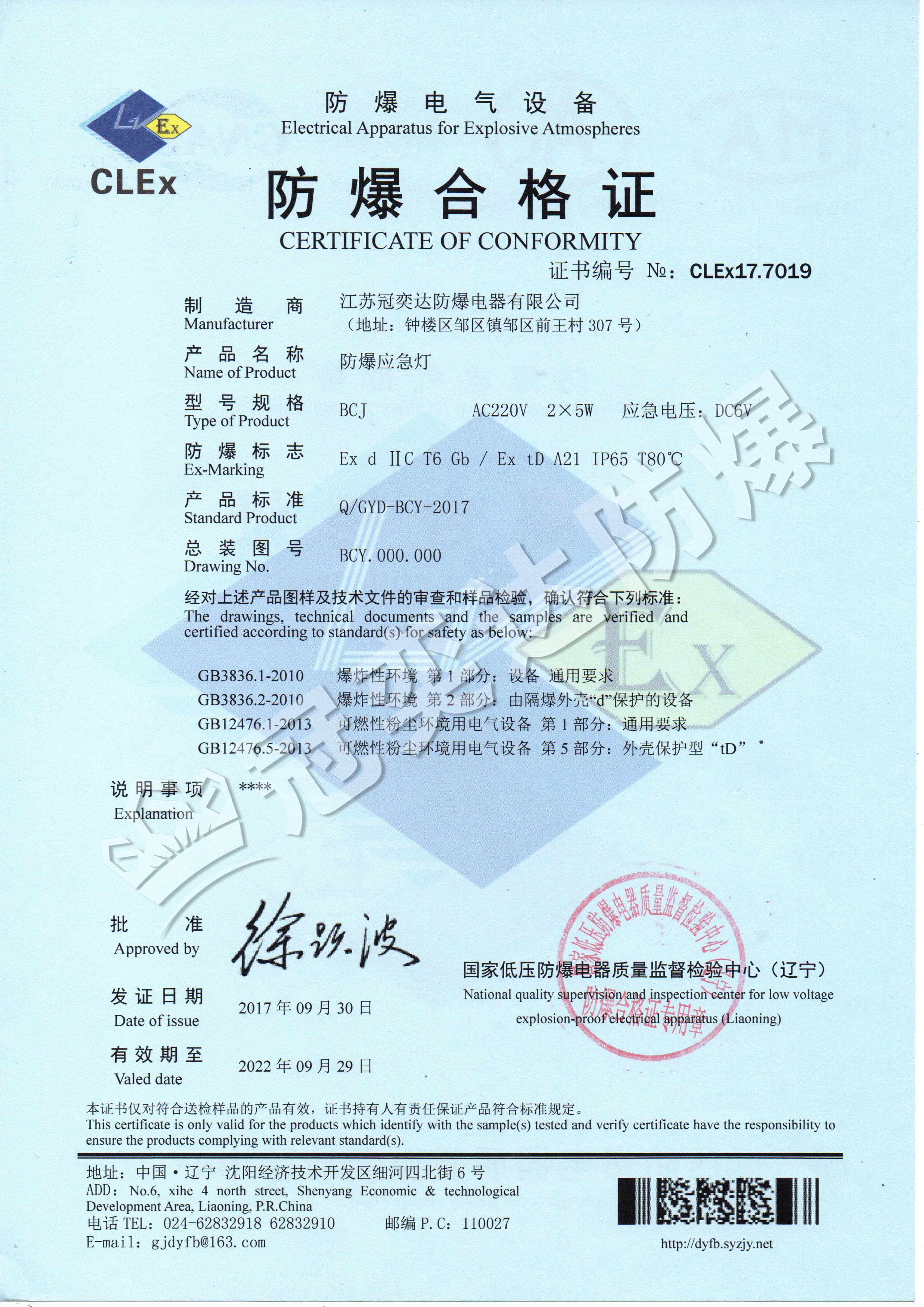 BCJ防爆應(yīng)急燈合格證