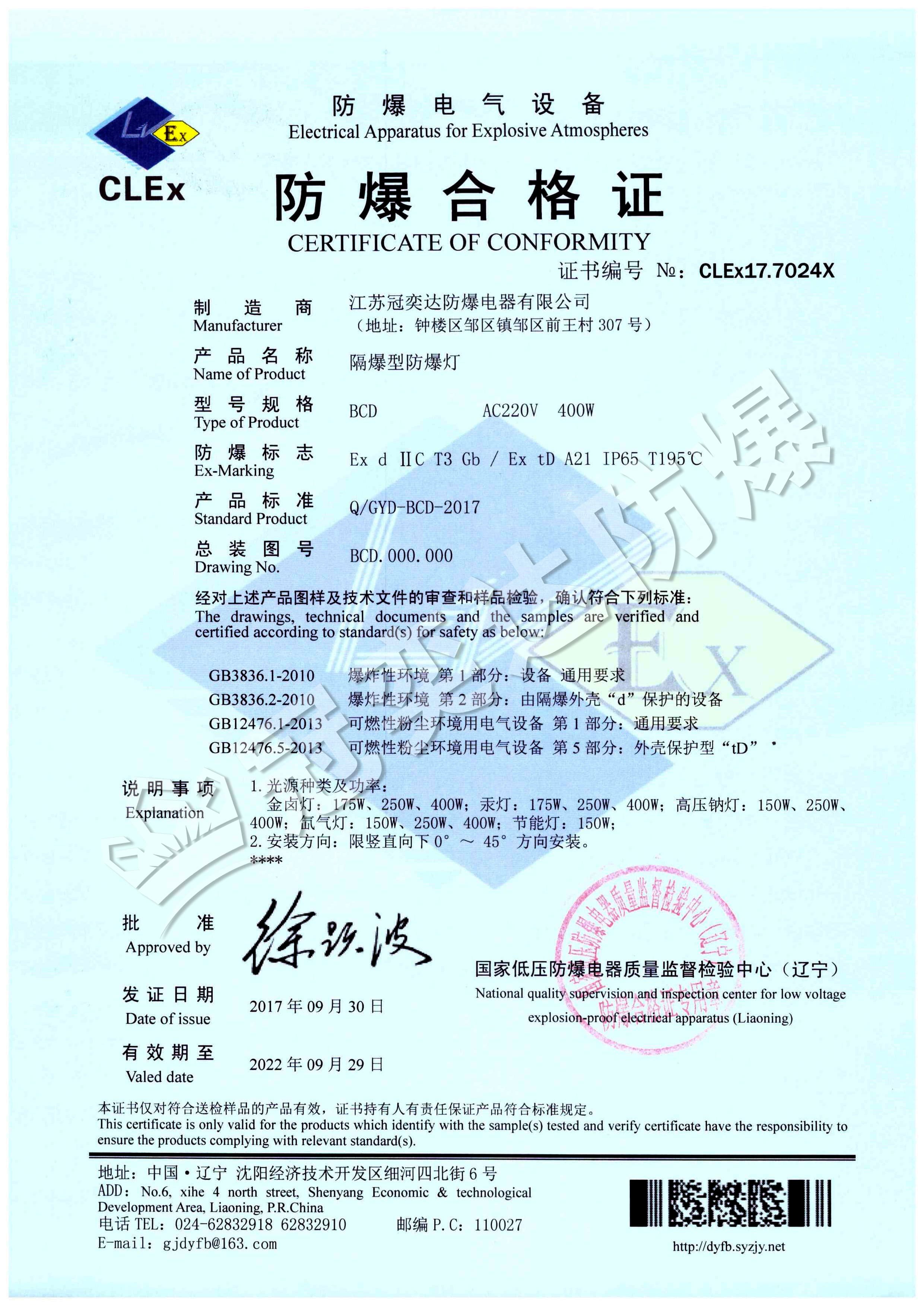 BCD隔爆型防爆燈合格證