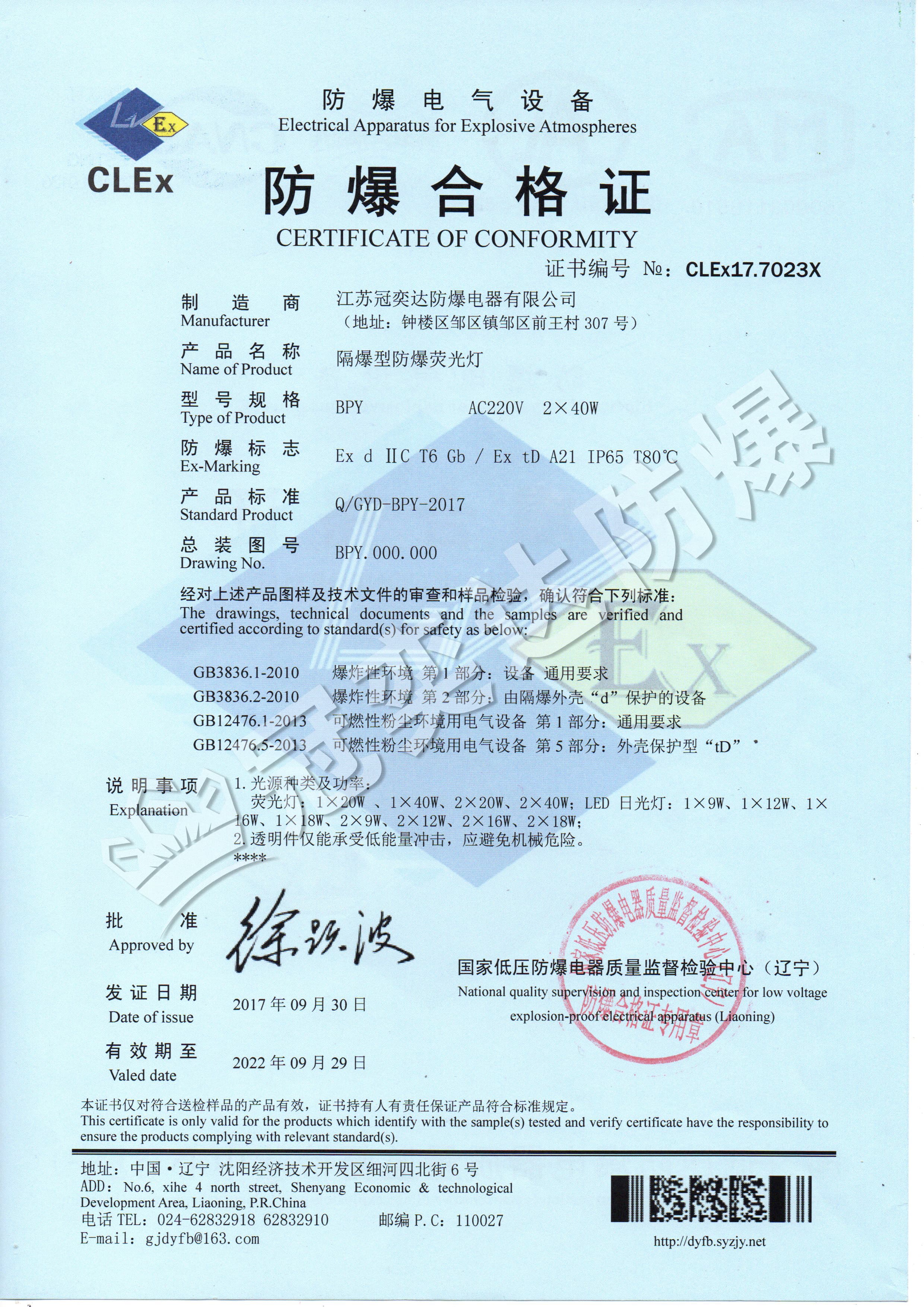 BPY隔爆型防爆熒光燈合格證