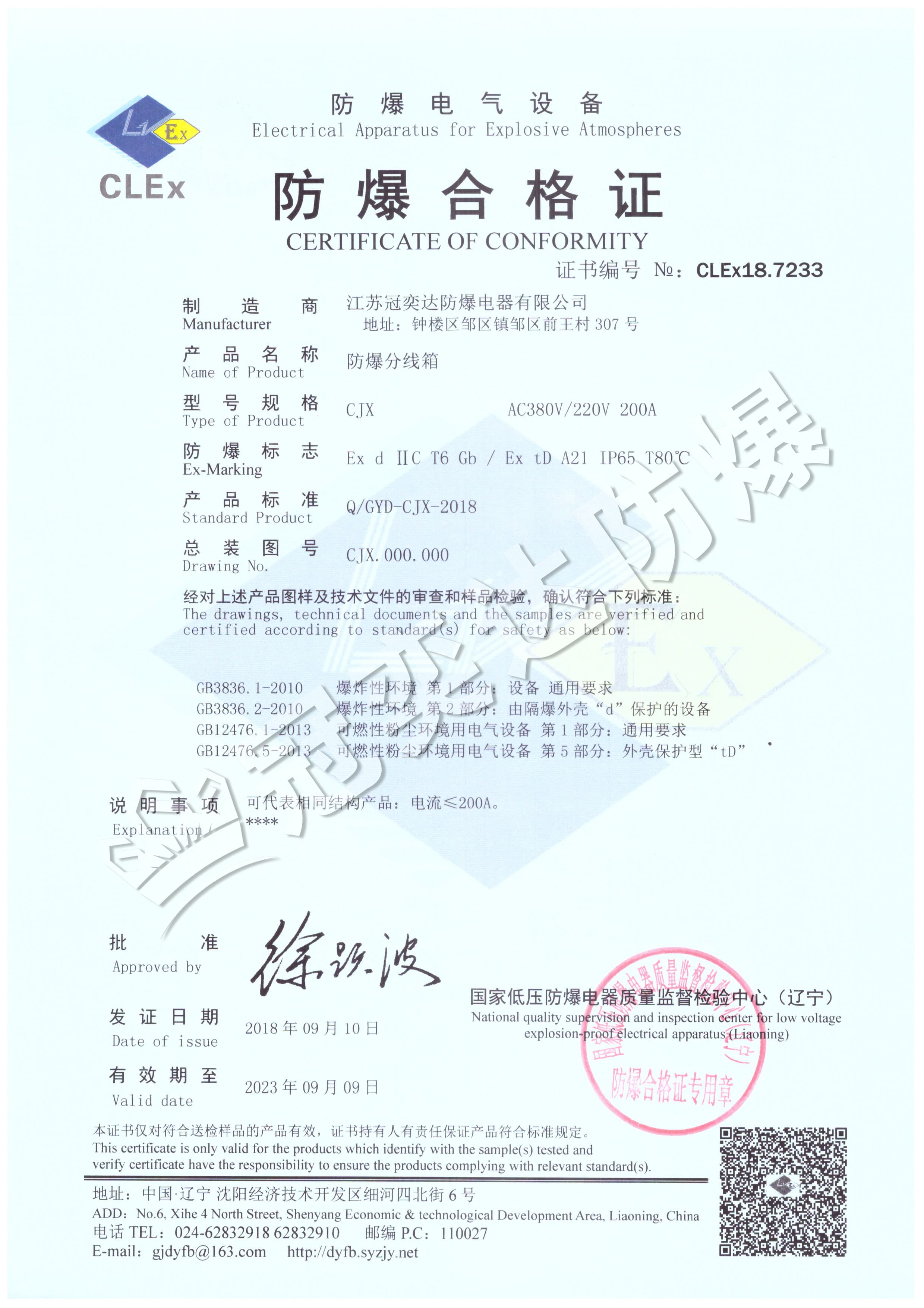 CJX防爆分線箱合格證