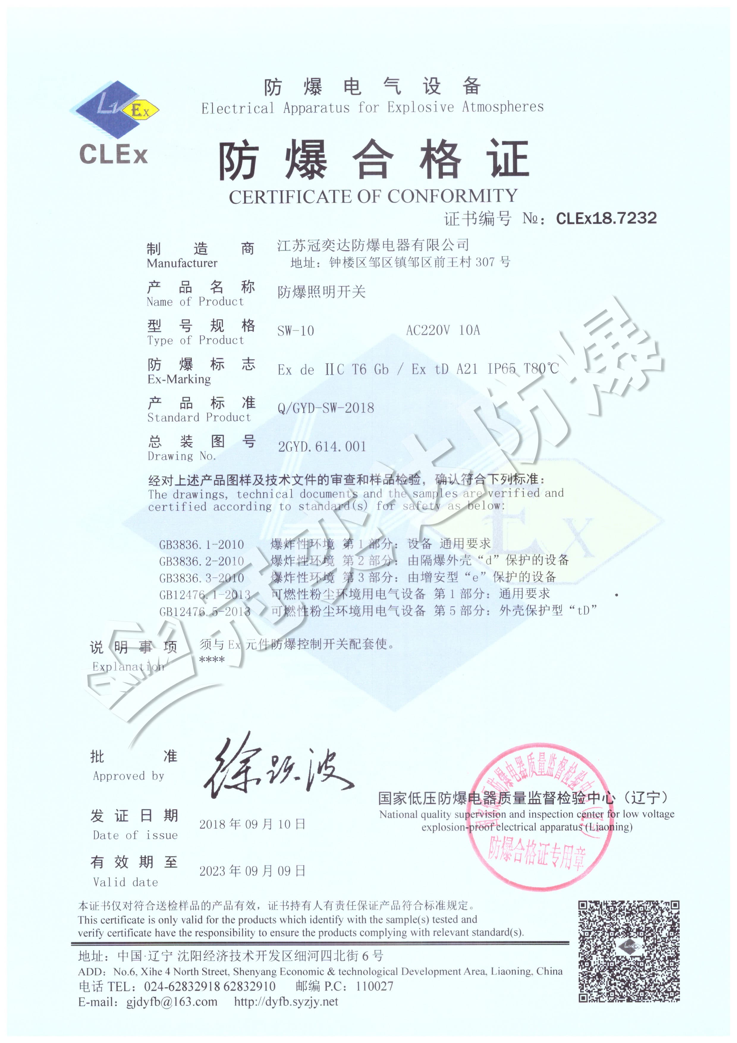 SW-10防爆開關(guān)合格證